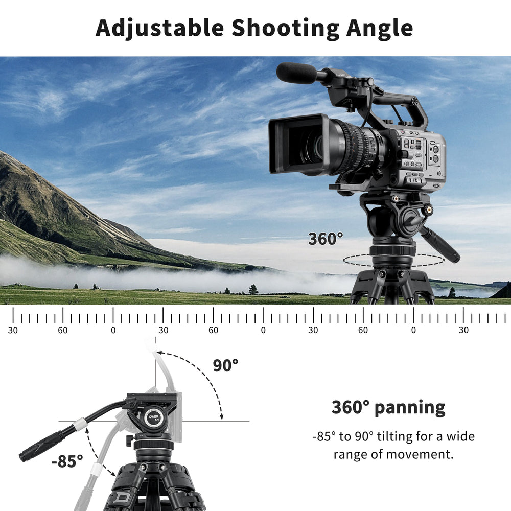 Featuring a 360° panning rotation and a tilt range of 150° (+90° to -60°), this fluid head supports panoramic shooting and provides a wide range of shooting horizons. Adjust the shooting angle effortlessly to capture the perfect shot every time.