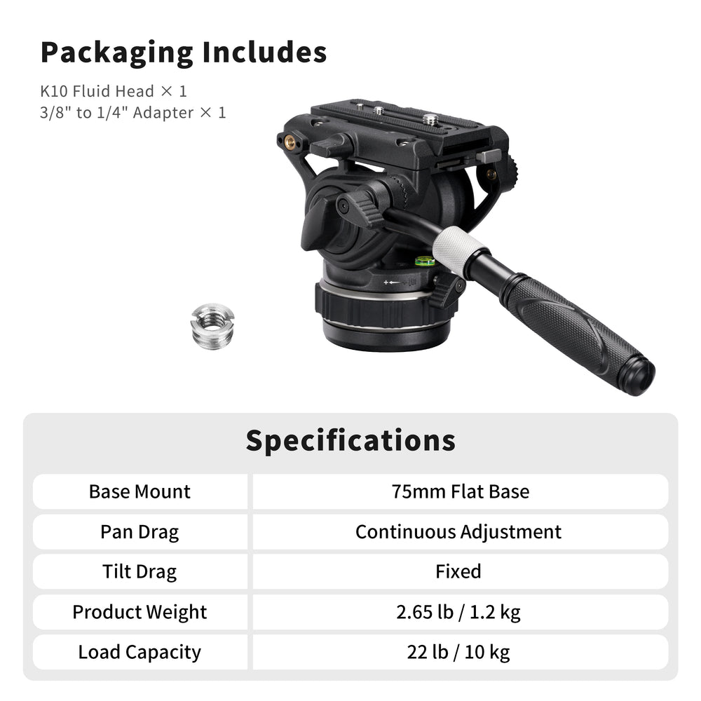 Cayer K10 Pro Video Fluid Head - the perfect companion for professional videographers seeking high-quality and steady footage. With its advanced damping system and continuously adjustable pan drag, this lightweight fluid head offers superior control over camera movements during shooting.